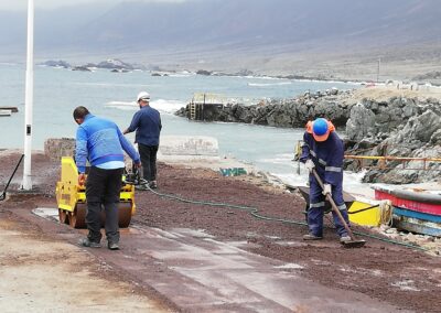 Obra de conservación del borde costero en Caleta Paposo, comuna de Taltal, Región de Antofagasta. El proyecto contempló la ejecución de enrocados de protección y trabajos de reforzamiento estructural, con el fin de mejorar la seguridad del sector frente al oleaje y marejadas. Esta intervención permitió resguardar la infraestructura existente y aportar al desarrollo de la actividad pesquera artesanal de la zona.